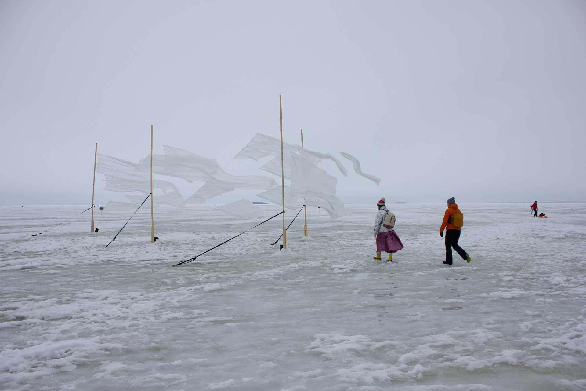 "Wind Sculptures" installation. Frozen People Festival, Oulu, Finland. March 2024.