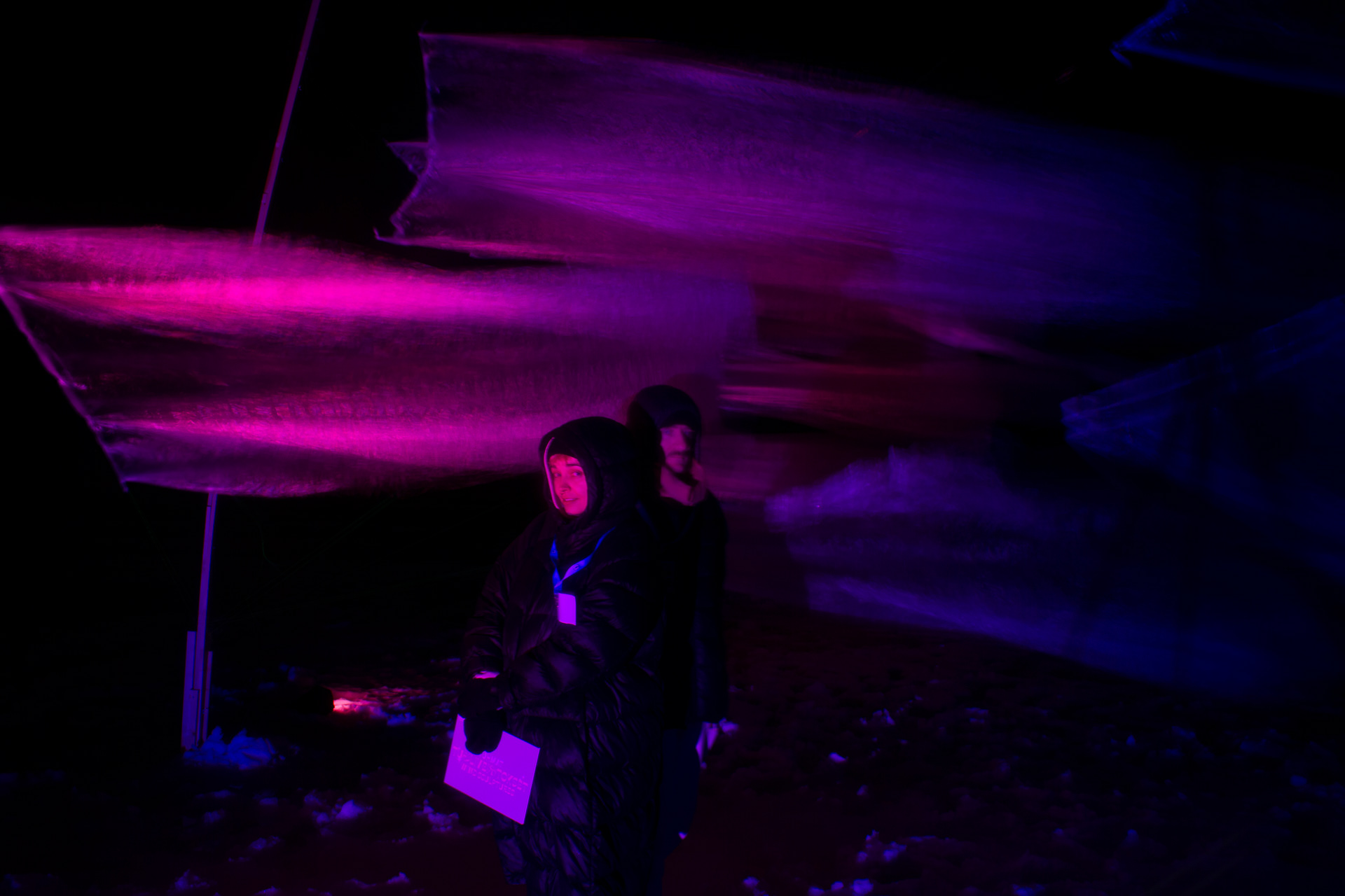 Tuhmat in front of their installation Wind Sculptures. Frozen People Festival 2024.